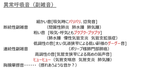 気道での分泌物貯留は粗い断続性副雑音(コースクラックル、水泡音)を生じます。ボコボコというような音です。