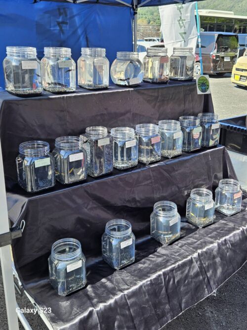 メダカを育てている出展者さんからのお話の中で三色メダカの奥深さや繁殖の難しさを知りました。やはり水質管理が大事ということも。