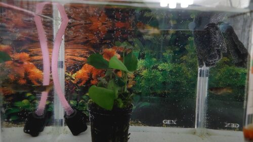 水槽内を楽しくするカラフルなエアレーションチューブ。