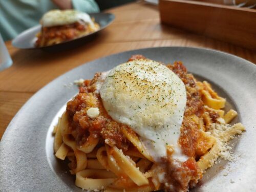 BULE EDGE Diner で「牛すじボロネーゼパスタ・ブラータチーズのせ」と、