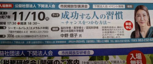 下関で行われた脳科学者・中野信子さんの講演「成功する人の習慣~チャンスをつかむ方法~」に参加してきました。