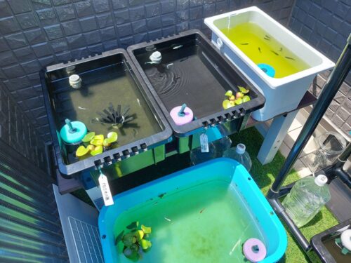 孵化から1か月ほど経ち、サイズに差が出てきたため、サイズごとに分けて管理を始めました。