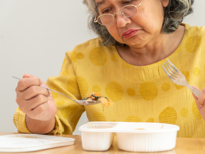 患者の訴え(S)と体重減少(O)を分析し、栄養不足の可能性を考慮。