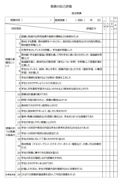 教育の質を高めるには、学生による他者評価だけでなく、教員自身による自己評価が重要な役割を果たします。