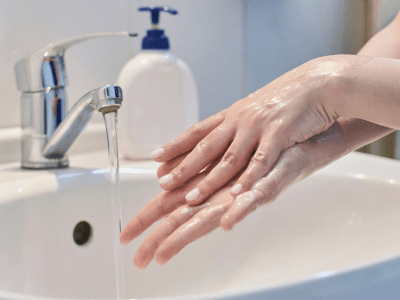 手を洗う際は、温水とマイルドな石鹸を使用し、手のすべての部分を丁寧に洗いましょう。