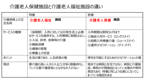 特別養護老人ホームとの違いは医療の提供があることです。