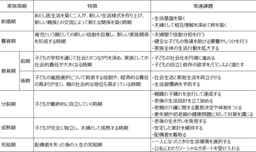 この周期的な変化は、家族周期(ファミリー・ライフサイクル)として表現され、それぞれの段階において特有の課題が存在します。