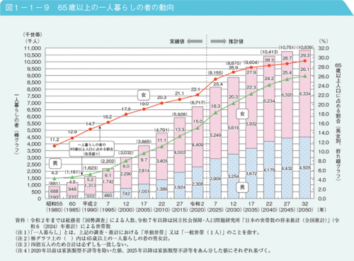 👉 高齢者の一人暮らし増加