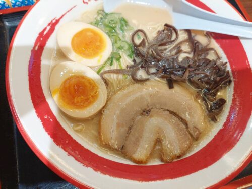 そして、久しぶりに古賀のサービスエリアで、那の福屋台のとんこつラーメンも心に沁みました。