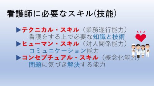 看護をする上で必要な知識と技術、対人関係能力、そして問題に気づき解決する能力があれば質の高い看護が提供できると思います。