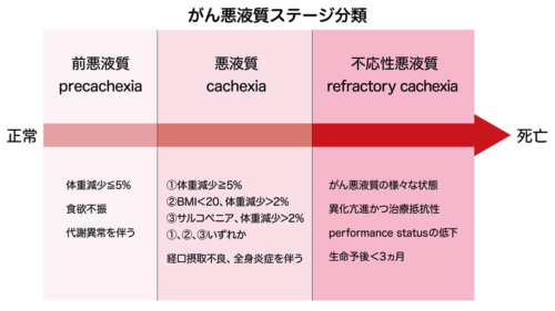「がん悪液質」と呼ばれる状態では、筋肉量が減り、体重が落ち、どんなに食べようとしても食欲がわかず、体が受けつけなくなってしまうのです。