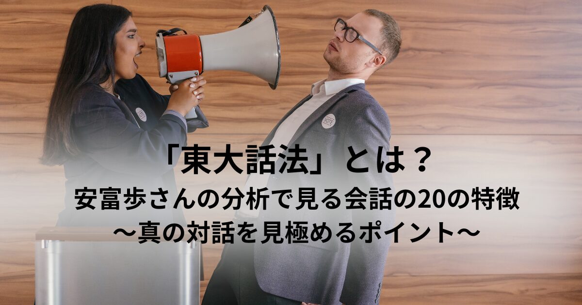 私は相手に向き合い、前向きで透明なコミュニケーションを大切にしていますが、私が学んだ「東大話法」という考え方は、真の対話を見極める大きなヒントになりました。